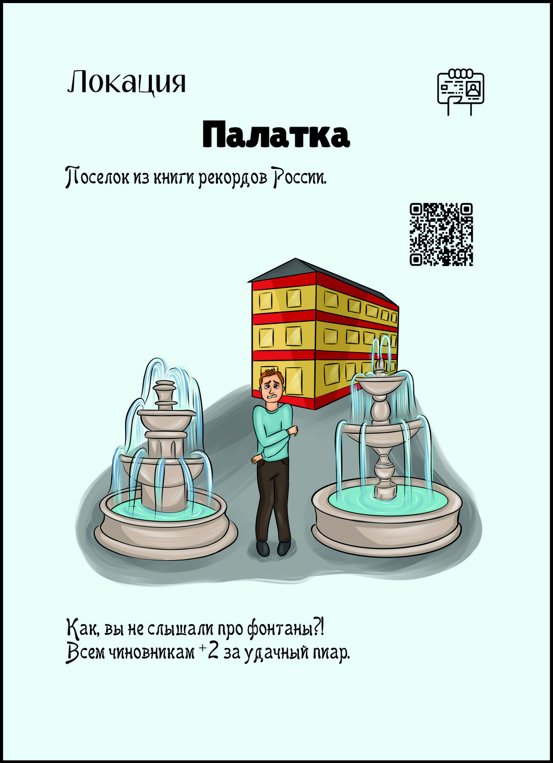 Все Встречи будут проходить в поселке. Если ты Чиновник, то +2 к обаянию на каждой Встрече в локации. |