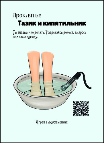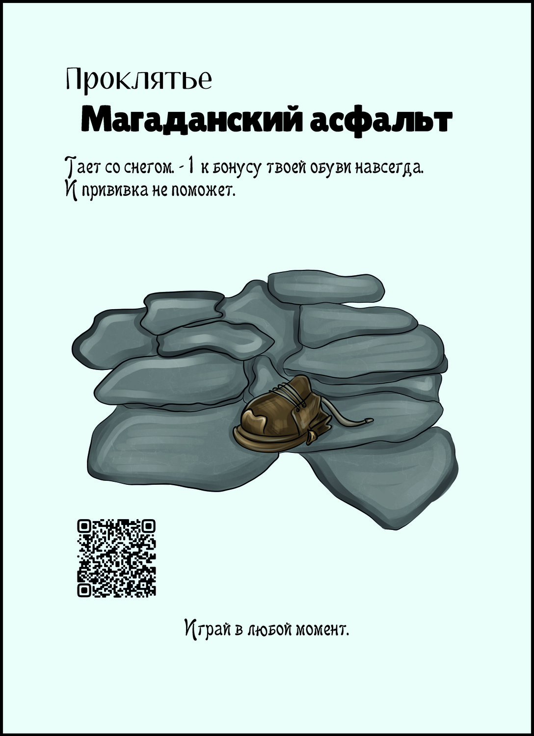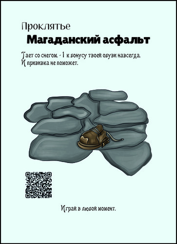 Проклятие срабатывает, когда выкладывается на стол. Если ты вытянул его из колоды в открытую - то на тебя. Если получил в руку - припрячь и в любой удобный момент сыграй на соперника. После Встречи без обуви надень свои старые Боты обратно. |