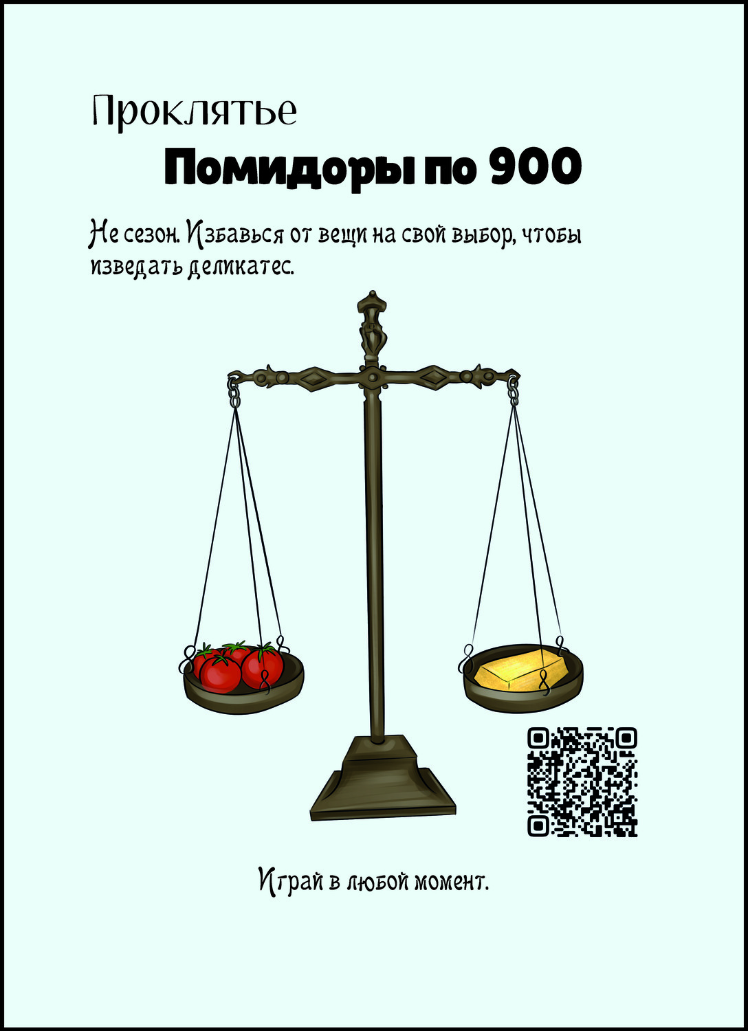 Проклятие срабатывает, когда выкладывается на стол. Если ты вытянул его из колоды в открытую - то на тебя. Если получил в руку - припрячь и в любой удобный момент сыграй на соперника. Если тебе не от чего избавляться (нет Вещей, надетых на тебя), ты теряешь уровень. Если ты 1-го уровня, твой персонаж умирает. |