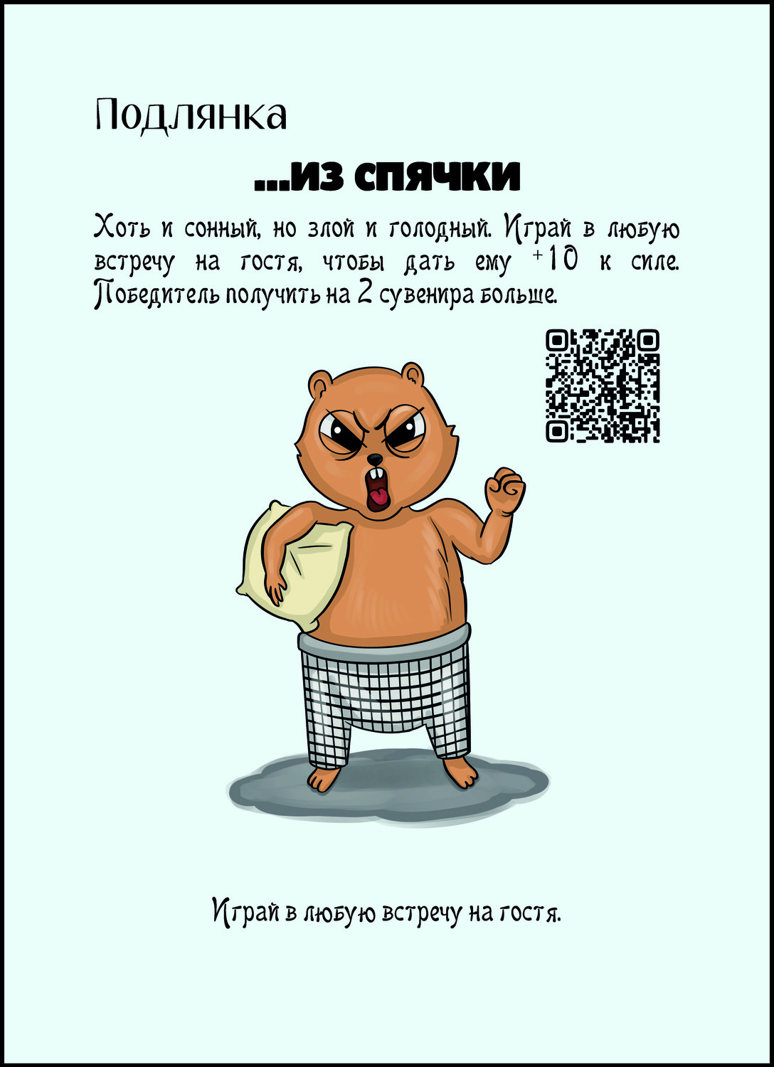 Эта карта может усилить Гостя на Встрече, прибавив к силе 10, но при удачной Встрече, игрок получит на 2 сувенира больше. Играй, чтобы подставить соперника, или чтобы усилить свою Встречу со слабым Гостем и получить больше сувениров. |