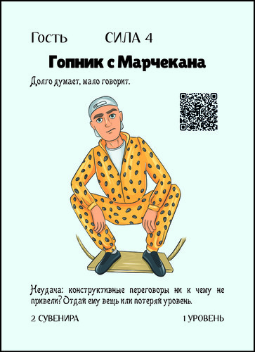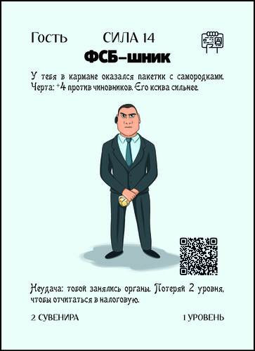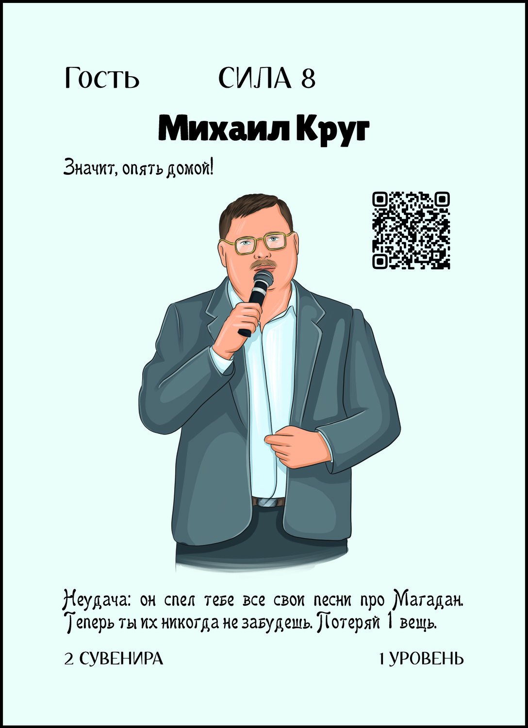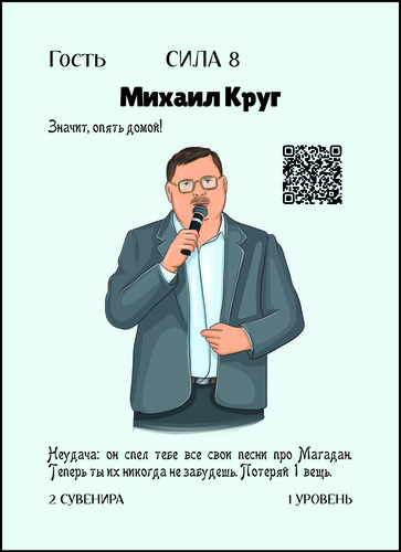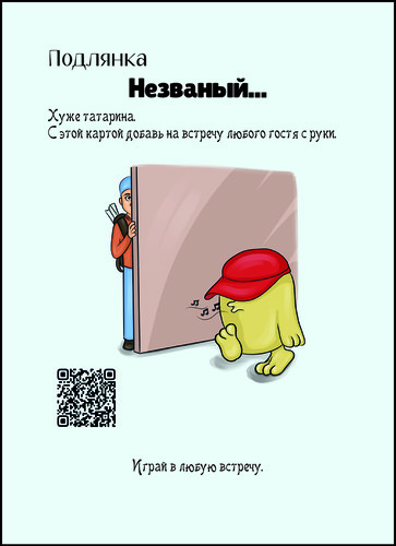 С этой картой ты можешь подкинуть на чужую Встречу еще одного Гостя, если у тебя есть он в руке. Тогда игрок будет вынужден проводить Встречу одновременно с двумя и оказаться по обаянию сильнее обоих Гостей, вместе взятых. А можешь играть и в свою Встречу, чтобы добавить себе уровней и сувениров. Если, конечно, уверен. |