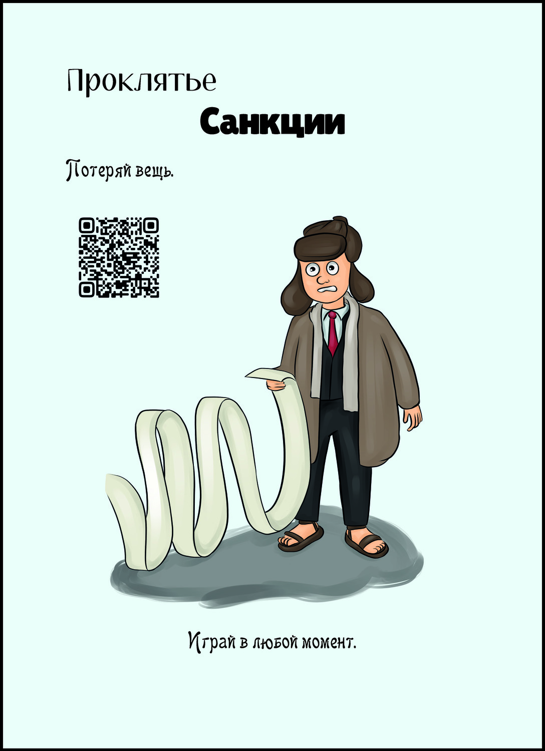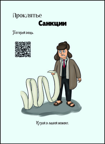 Проклятие срабатывает, когда выкладывается на стол. Если ты вытянул его из колоды в открытую - то на тебя. Если получил в руку - припрячь и в любой удобный момент сыграй на соперника. Потеряй любую надетую на персонажа вещь. |