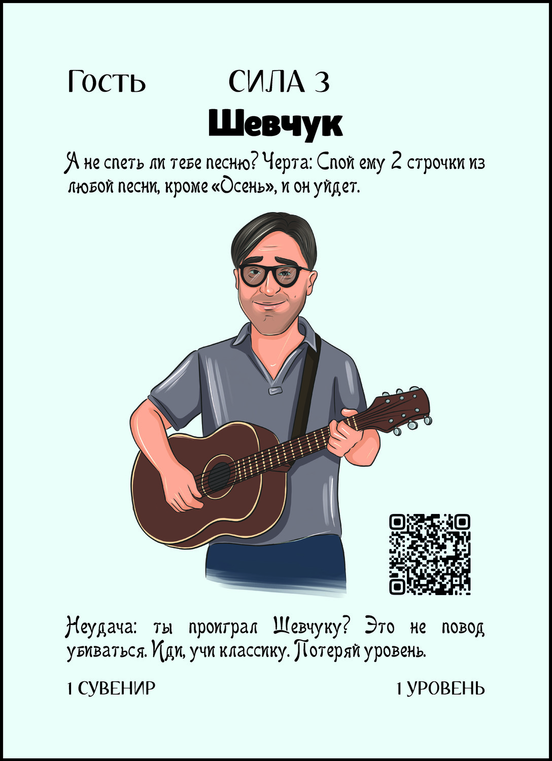 Если ты спел 2 строчки из любой песни, кроме “Осень”, Встреча считается проведенной, но уровень и сувениры ты не получаешь. Неудача на тебя тоже не действует, он же просто ушел. Неудача: помни, ниже 1-го уровня “упасть” нельзя. |